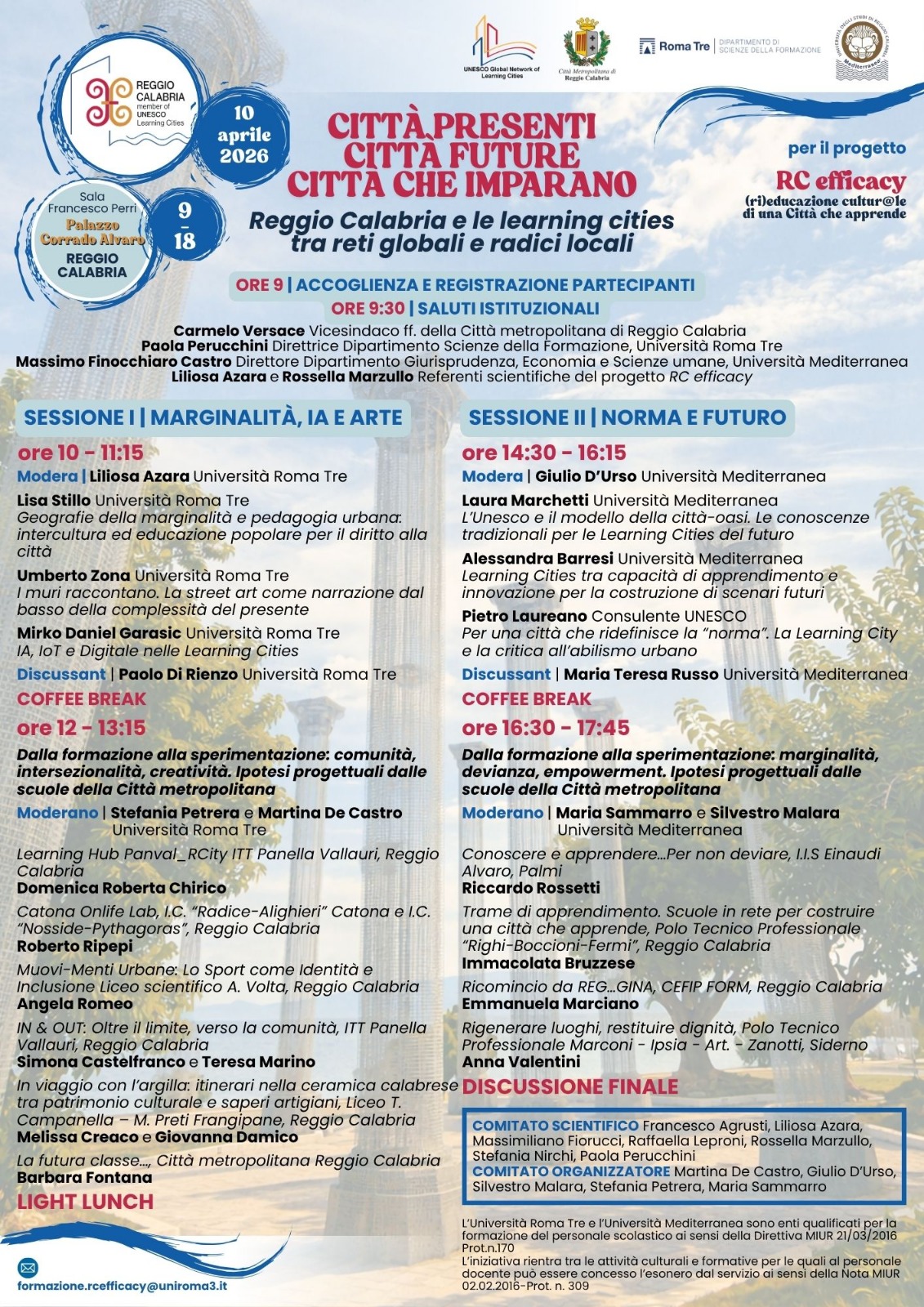 L'evento si inserisce all'interno del progetto "RC efficacy - (ri)educazione cultur@le di una Città che apprende", promosso dalla Città Metropolitana di Reggio Calabria in sinergia con l'Università Roma Tre (Dipartimento di Scienze della Formazione) e l'Università degli Studi Mediterranea. La giornata rappresenta un importante momento di confronto, ricerca e progettazione condivisa volto a mettere in dialogo le reti globali con le radici locali, ponendo Reggio Calabria al centro di una riflessione su innovazione, apprendimento e futuro urbano.